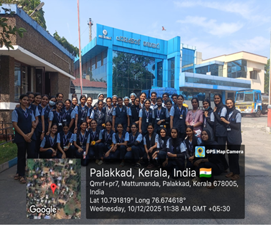 The Community Health Nursing Department of P.K. Das College of Nursing organized an educational field visit to the Milma Dairy Plant, Palakkad on 9th and 10th December 2025 for 90 students of 5th Semester B.Sc. Nursing.
